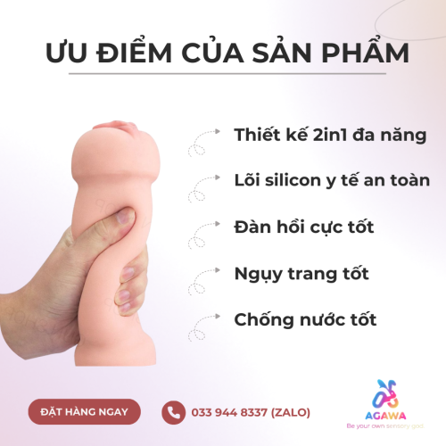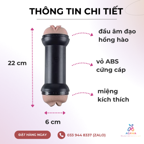 - Thiết kế 2in1 đa năng, một đầu âm đạo hồng hào khiêu gợi, một đầu miệng đàn hồi có thể ôm sát lấy dương vật khi thủ dâm.