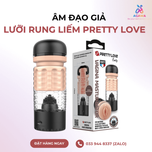 - Âm đạo giả lưỡi rung liếm Pretty Love là một loại sextoy cho nam, được thiết kế mô phỏng hình dáng âm đạo phụ nữ , dễ dàng sử dụng, giải tỏa nhu cầu sinh lý cá nhân an toàn và tiện lợi.
