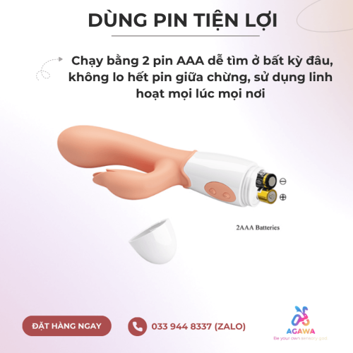Điểm đặc biệt nhất: thiết kế 2 trong 1 với nhánh phụ rung bên hông. Khi nhánh chính cong nhẹ đưa vào bên trong kích thích sâu, nhánh phụ sẽ áp vào vùng nhạy cảm bên ngoài rung cùng lúc – vừa sướng bên trong vừa sướng bên ngoài. Chất liệu silicone bọc ABS mịn màng, nhỏ gọn chỉ 109g, dùng 2 pin AAA dễ thay – tiện lợi mang theo bất cứ đâu.