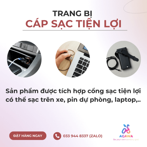 Điểm nổi bật: Sạc USB tiện lợi bằng laptop, sạc dự phòng, sạc ô tô – mang đi đâu cũng dùng được, riêng tư tuyệt đối.