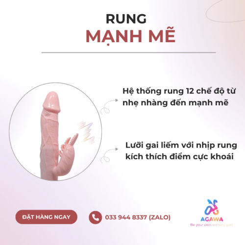 Trong khi thân chính ngoáy xoay sâu bên trong thì nhánh phụ có gai liếm mơn trớn vuốt ve âm vật và điểm G bên ngoài. Cảm giác rung đa điểm đồng thời khiến bạn tê dại người, bắn nước liên tục – cực khoái liên tục là chuyện không khó với em này.